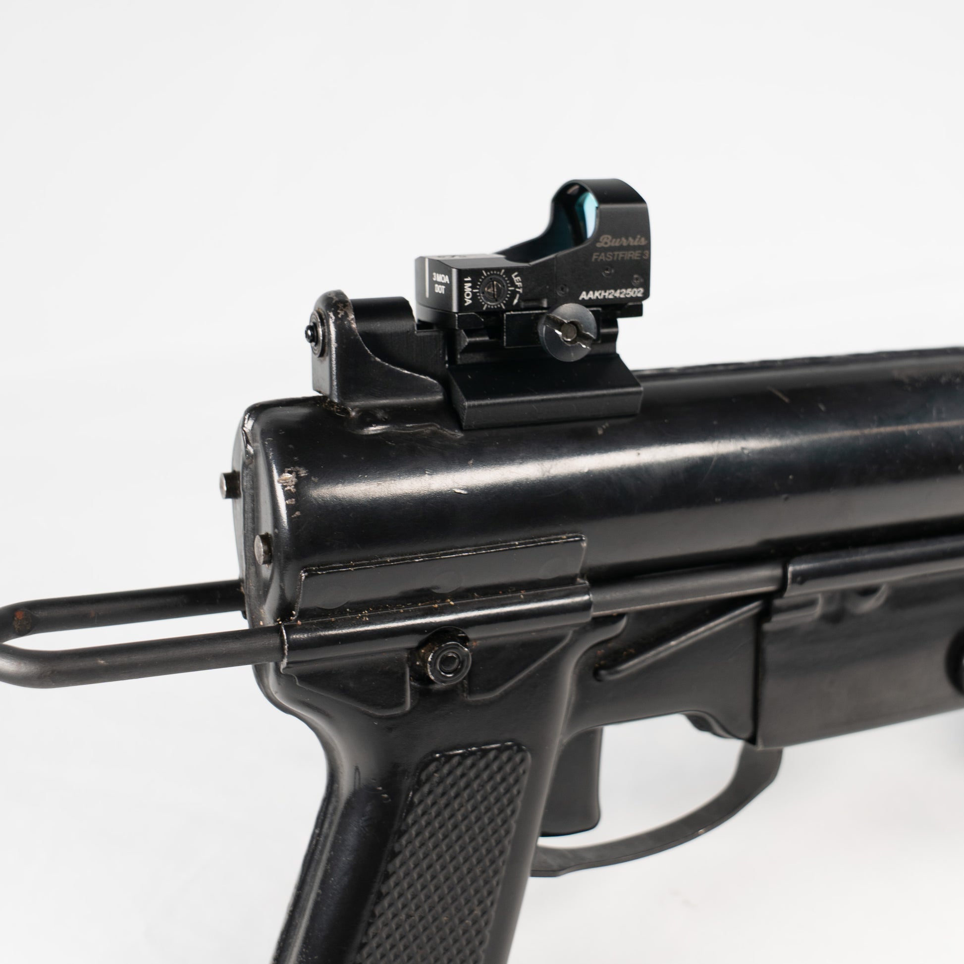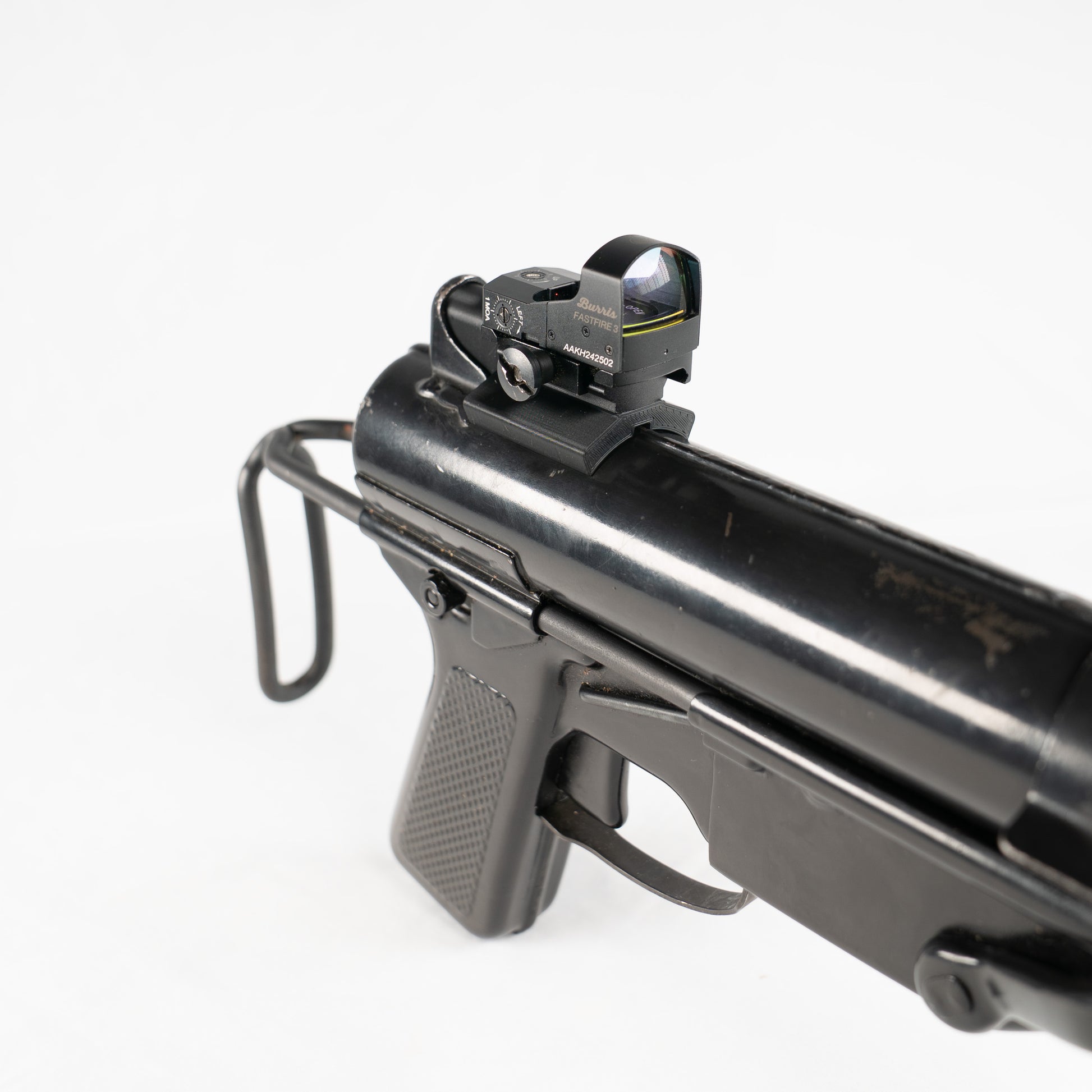 Optic mount for the M3 Submachine Gun (Grease Gun). Easy to install. Rail is made of aluminum and mount is made of impact resistant plastic. Simple one screw and rare earth magnets hold mount in place. Does not require modification to the firearm and can be removed easily to use the existing iron sights.